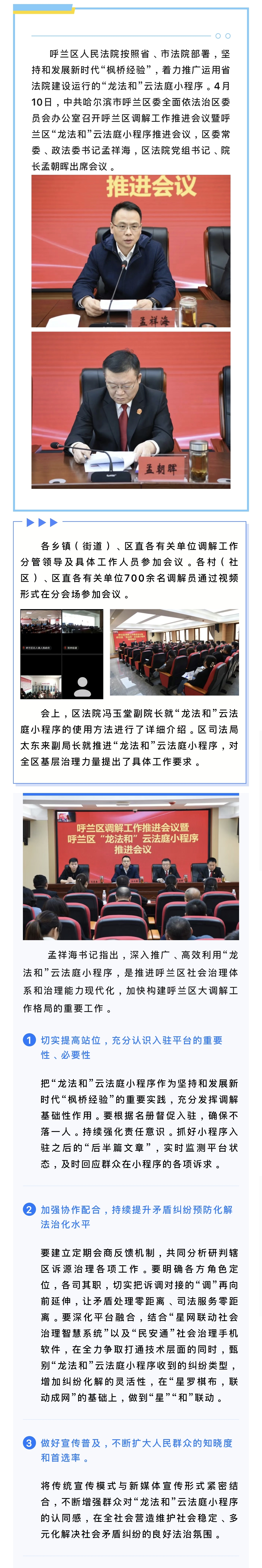 “星”“和”联动,探索诉源治理呼兰实践 ——呼兰区召开调解工作推进会议暨“龙法和”云法庭小程序推进会议