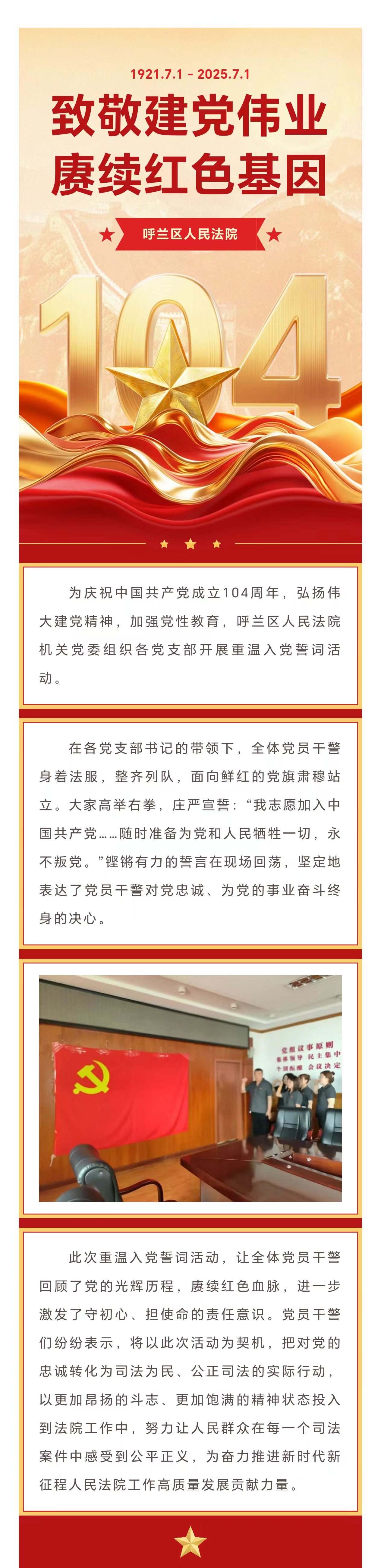 【文化铸品】“法树新‘枫’”创品牌 党建引领建新功——呼兰区人民法院组织开展重温入党誓词活动