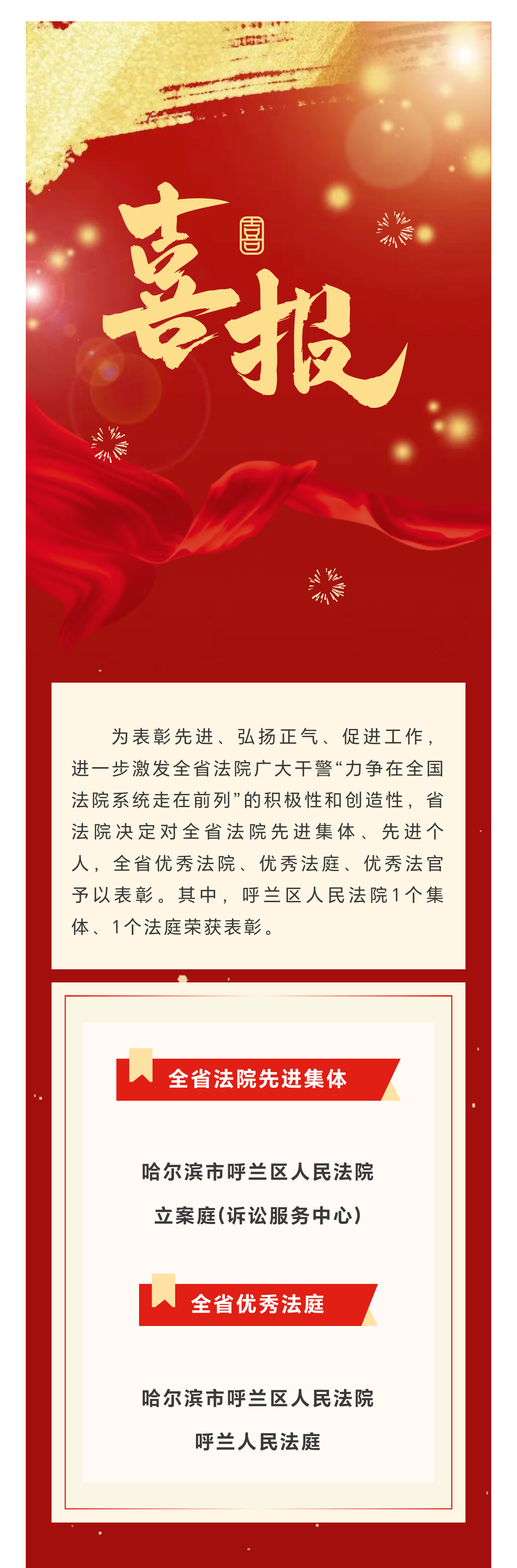 走在前列丨喜报!呼兰区人民法院1个集体、1个法庭获省级表彰
